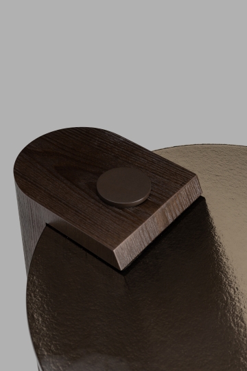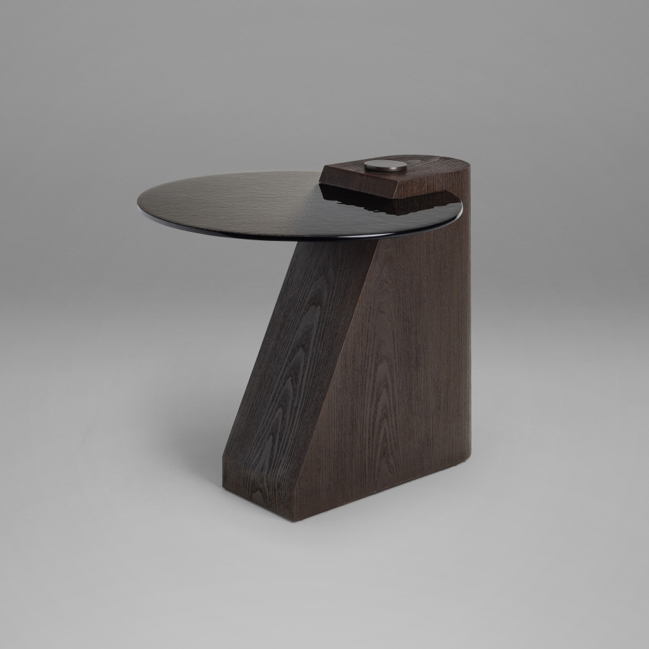A Mesa Lateral Low é uma peça de design marcante e contemporâneo. Resultado da composição entre a base em madeira em ângulos sinuosos, com o contraponto do tampo em vidro finalizado com um disco em metal - compõe de forma singular qualquer ambiente.