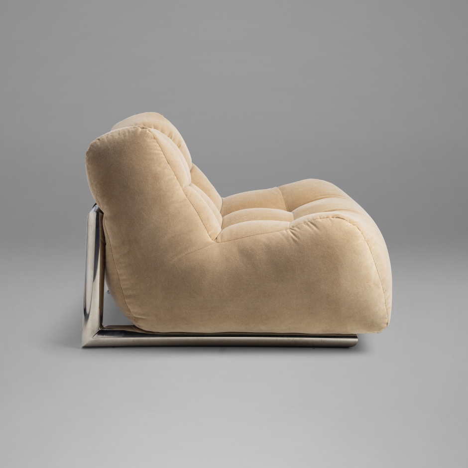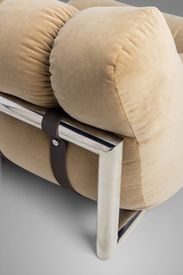 Inspirada na irreverência dos movimentos de design Modernista e Midcentury, a Poltrona Horizonte emana conforto e personalidade. Suas formas arredondadas e proporções generosas evocam o espírito criativo dos anos 60, reinterpretado com um olhar contemporâneo. A estrutura em inox polido cria um contraste elegante com os puxões do estofado. Bótons personalizados com a marca adicionam um toque de exclusividade, enquanto as tiras em couro sustentam o assento com leveza e sofisticação. Ideal para ambientes descolados, a peça convida ao relaxamento. Seu visual icônico funciona como ponto focal em composições que equilibram funcionalidade e expressão