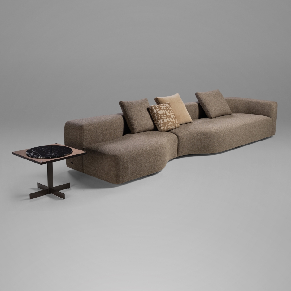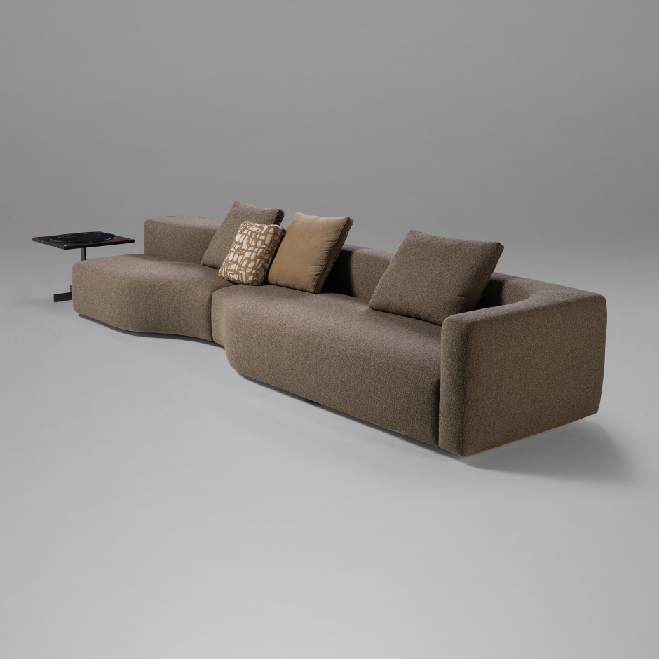 O sofá modular Orla combina linhas retas e curvas em uma composição dinâmica e elegante. Seu encosto de formato orgânico acompanha suavemente a curvatura do assento, criando uma estrutura fluida que favorece a ergonomia e adiciona caráter ao ambiente. A geometria singular estabelece conexões visuais entre os espaços, tornando-o uma peça-chave em projetos que priorizam integração e bem-estar. atendendo Com múltiplas possibilidades de modulação, o Orla se adapta com facilidade às exigências de cada proposta. Sua versatilidade permite composições personalizadas, tanto ambientes amplos quanto configurações mais compactas, sempre com foco no conforto e na harmonia estética.