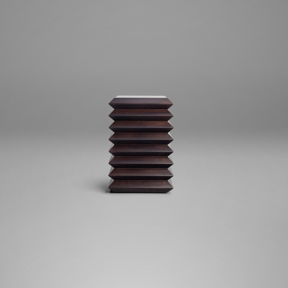 Inspirada no minimalismo oriental, a Mesa de Apoio Zag se destaca pelo dinamismo da sua volumetria. Com estrutura compacta e recortes em sanfona, apresenta uma estética ousada e escultural, imprimindo movimento e sofisticação. Confeccionada em madeira maciça, cuidadosamente tingida e polida, a peça estabelece uma relação harmônica com espaços contemporâneos e de vanguarda, funcionando como elemento de destaque