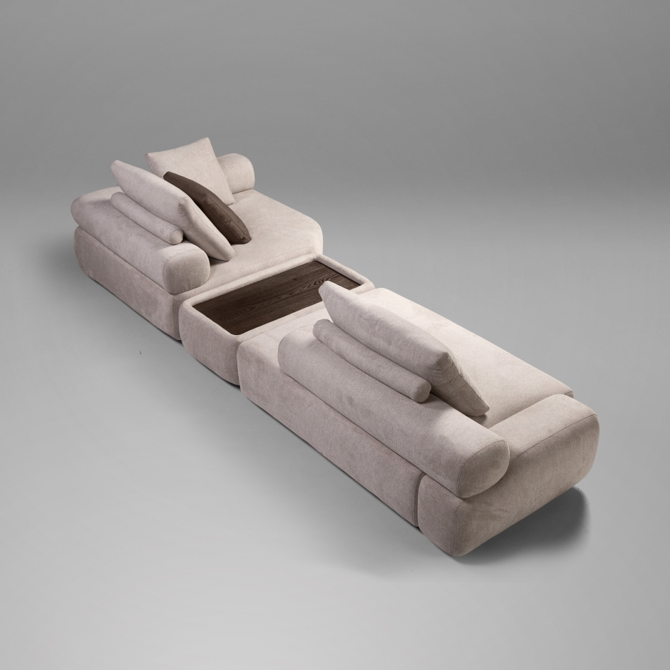 Inspirado pelo movimento modernista, o sofá Nilo combina assentos rebaixados, braços em formato rolo e encosto suavemente inclinado para oferecer conforto elevado e uma estética orgânica. As almofadas soltas e generosas favorecem composições flexíveis, adaptando-se com naturalidade a diferentes de ambiente. Elementos como a mesa acoplada e os pés recuados contribuem para uma leveza visual e funcional. configurações Pensado para valorizar salas amplas, o Nilo transforma o espaço em um cenário elegante, acolhedor e atemporal — uma verdadeira síntese entre estilo e bem-estar.