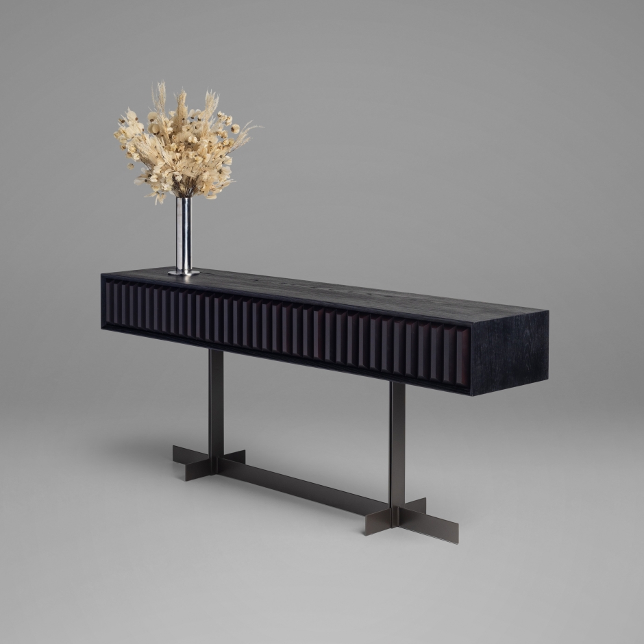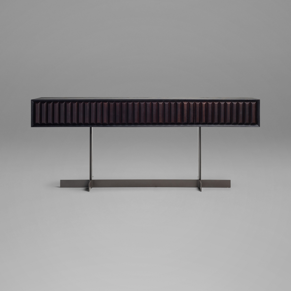 Inspirado no design Midcentury brasileiro, o Aparador Âmbar combina sofisticação e atenção aos detalhes em uma composição marcante. A estrutura retangular em madeira maciça exibe uma frente com sulcos verticais que criam um jogo de texturas. A peça é apoiada por pés metálicos esguios, unidos por uma barra horizontal que assegura firmeza e acrescenta um toque industrial. A união entre materiais nobres e linhas limpas resulta em um móvel de vanguarda e ao mesmo tempo funcional, capaz de dialogar com diferentes propostas de decoração.