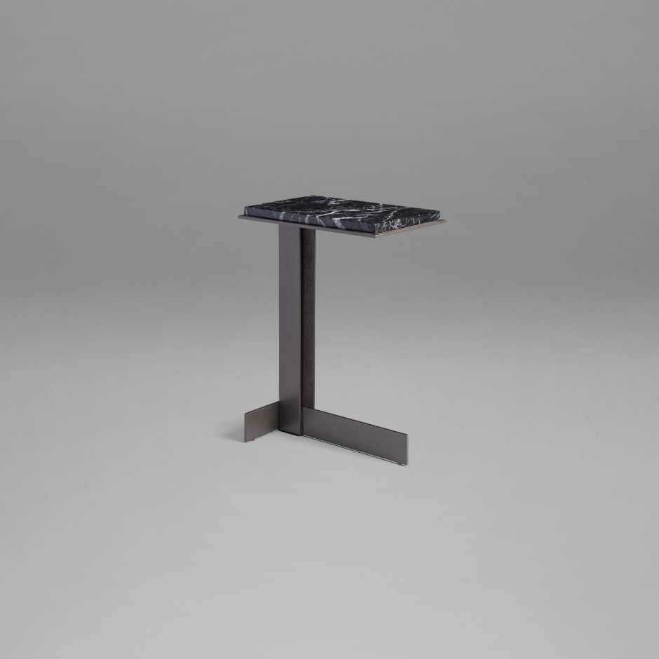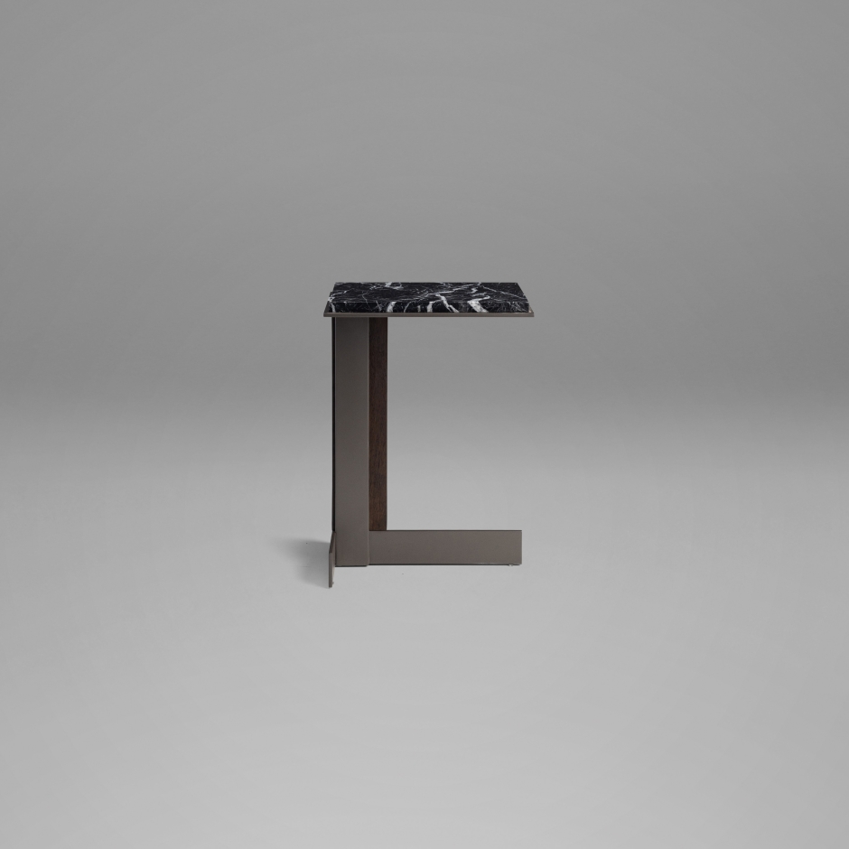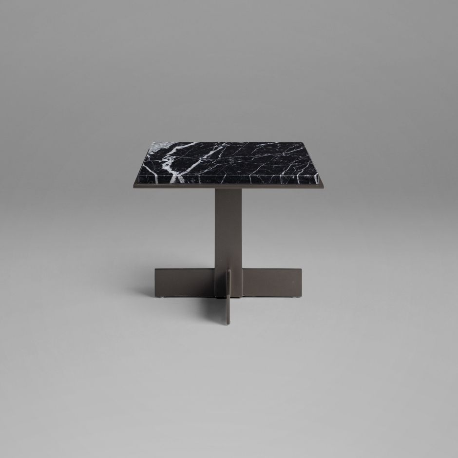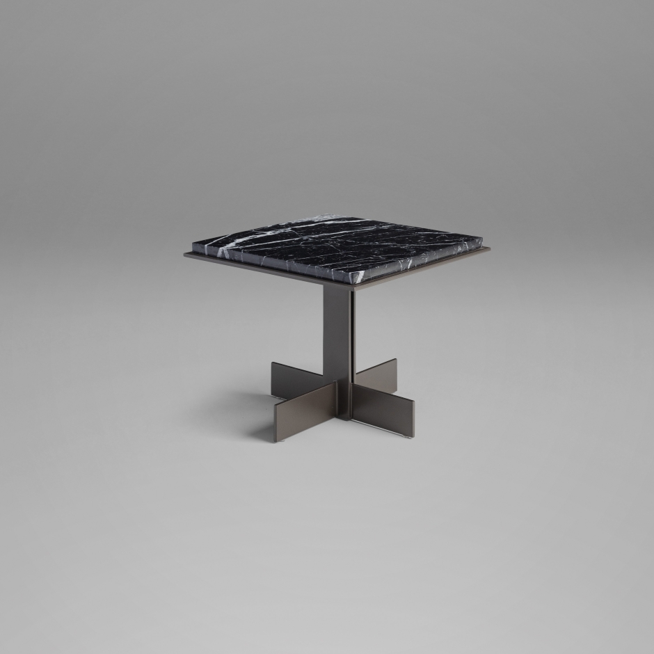 A Mesa de Apoio Dritto é inspirada no minimalismo oriental, destacado na harmonia entre materiais nobres e formas precisas. Seu tampo quadrado em mármore, apoiado sobre uma estrutura em inox polido, revela um contraste sofisticado entre a textura orgânica da pedra e o brilho metálico da base. A superfície polida realça os veios naturais do mármore, conferindo exclusividade e elegância à peça.