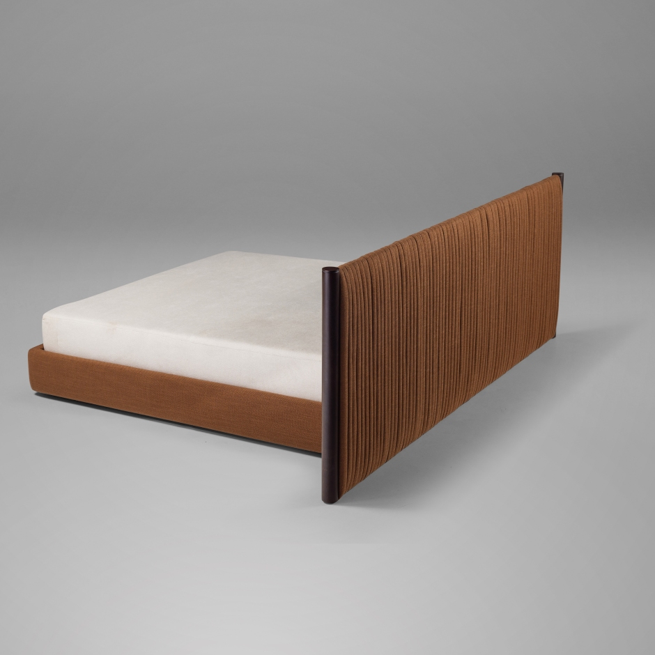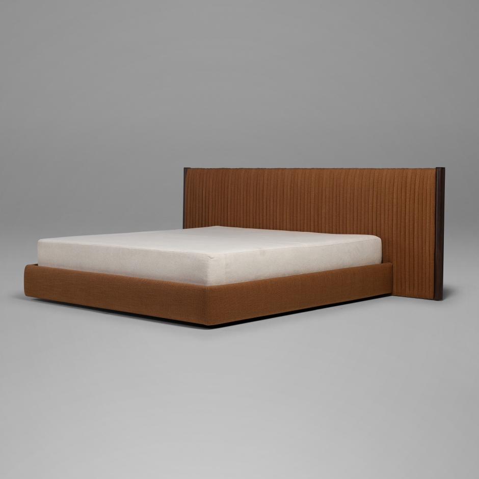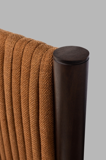 Inspirada no modernismo, a Cama Ana se destaca nos ambientes devido ao seu design repleto de detalhes. A cabeceira estofada em canaletado vertical, combinada ao estrado de linhas suaves, revela uma composição equilibrada de proporção e textura. A estrutura do espaldar em madeira maciça reforça o caráter artesanal e a solidez da peça.