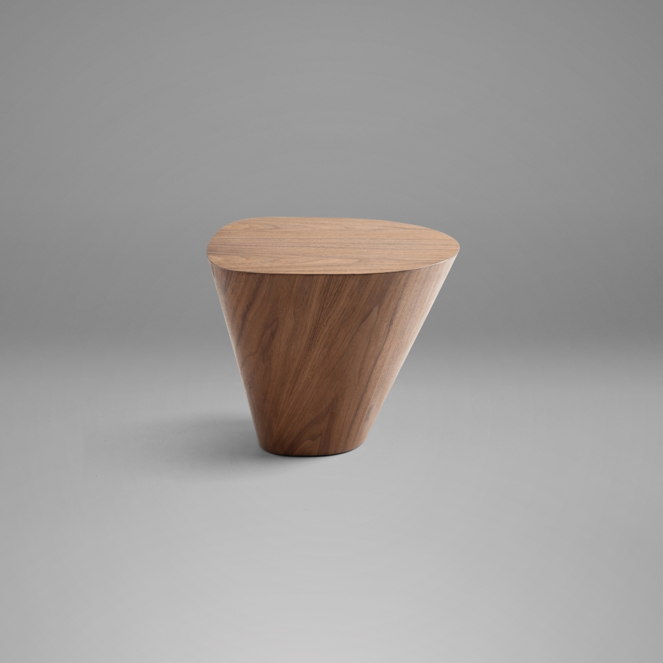 A mesa lateral Heel destaca-se por seu design escultural e minimalista, composto por uma forma cônica que confere elegância e originalidade ao ambiente. Com tampo amorfo e base estreita, a peça apresenta proporções equilibradas que aliam estética contemporânea à funcionalidade. O acabamento em lâmina de madeira natural revela veios sutis e texturas orgânicas, valorizando o material e trabalho artesanal.