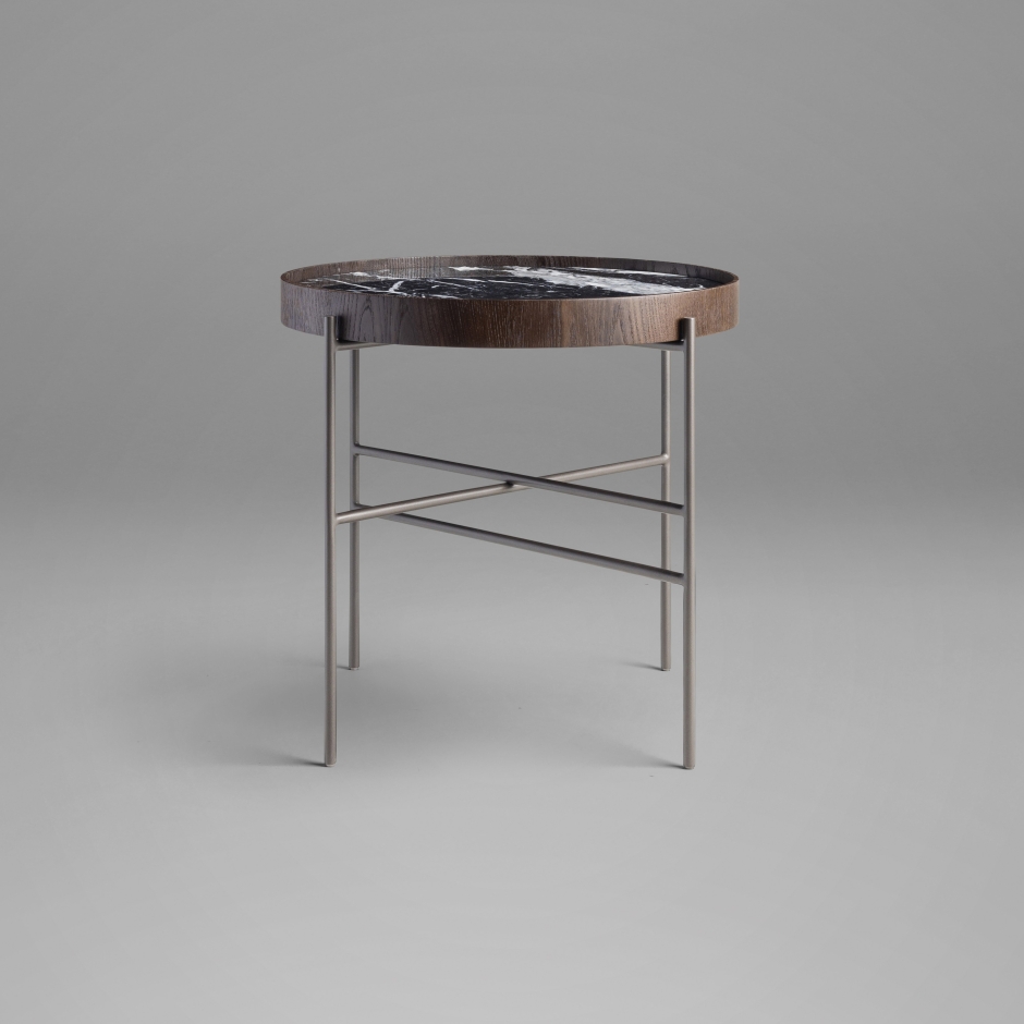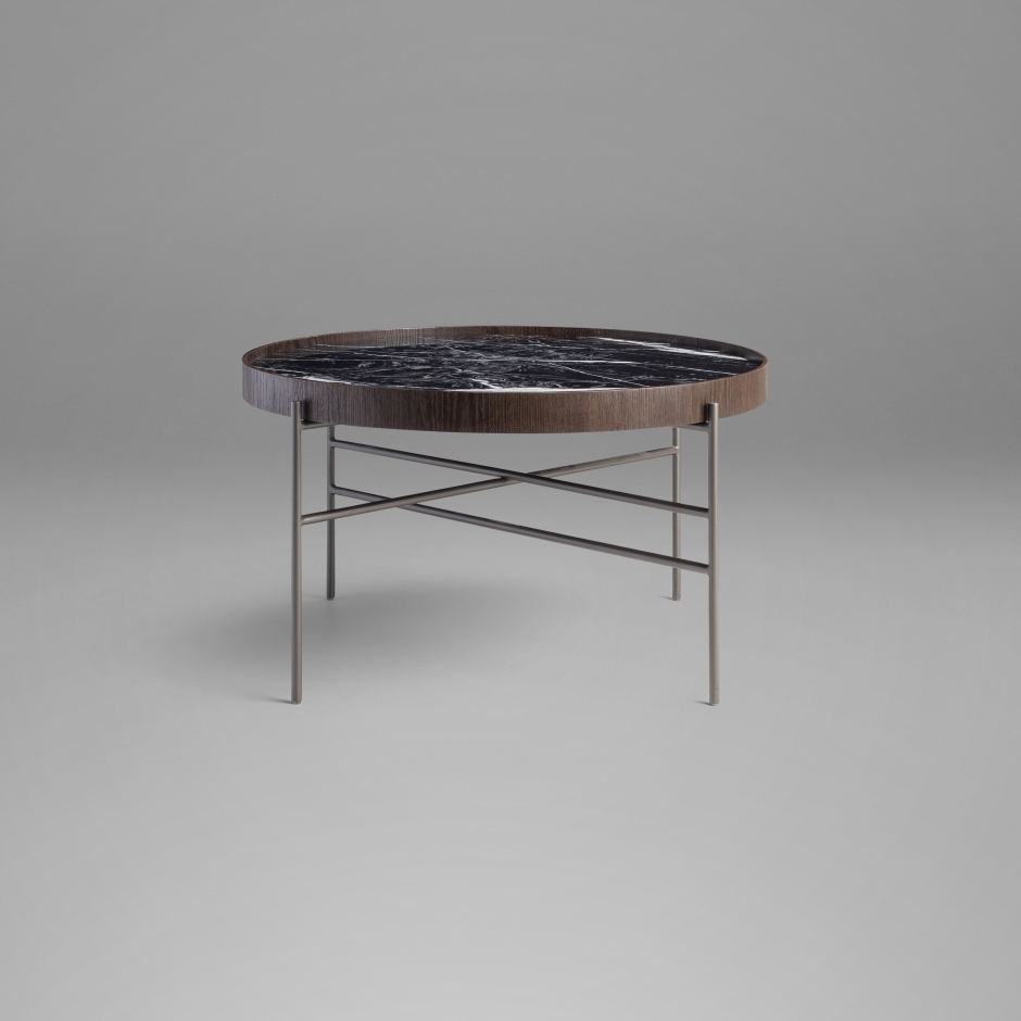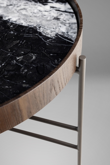 A mesa Vitória Régia é uma peça de design autoral inspirado no minimalismo oriental. Remetendo à beleza orgânica da planta aquática que lhe dá nome, seu tampo circular, em mármore ou vidro, repousa sobre uma base em metal pintado escultural. A borda do tampo em lâmina de madeira natural, apresenta curvas suaves e sobreposições que evocam o movimento natural da água, criando uma estética poética e sofisticada.